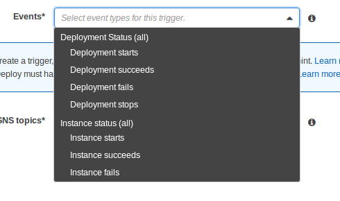 After selecting the event just mention the SNS topic and create the trigger. You can create multiple triggers.