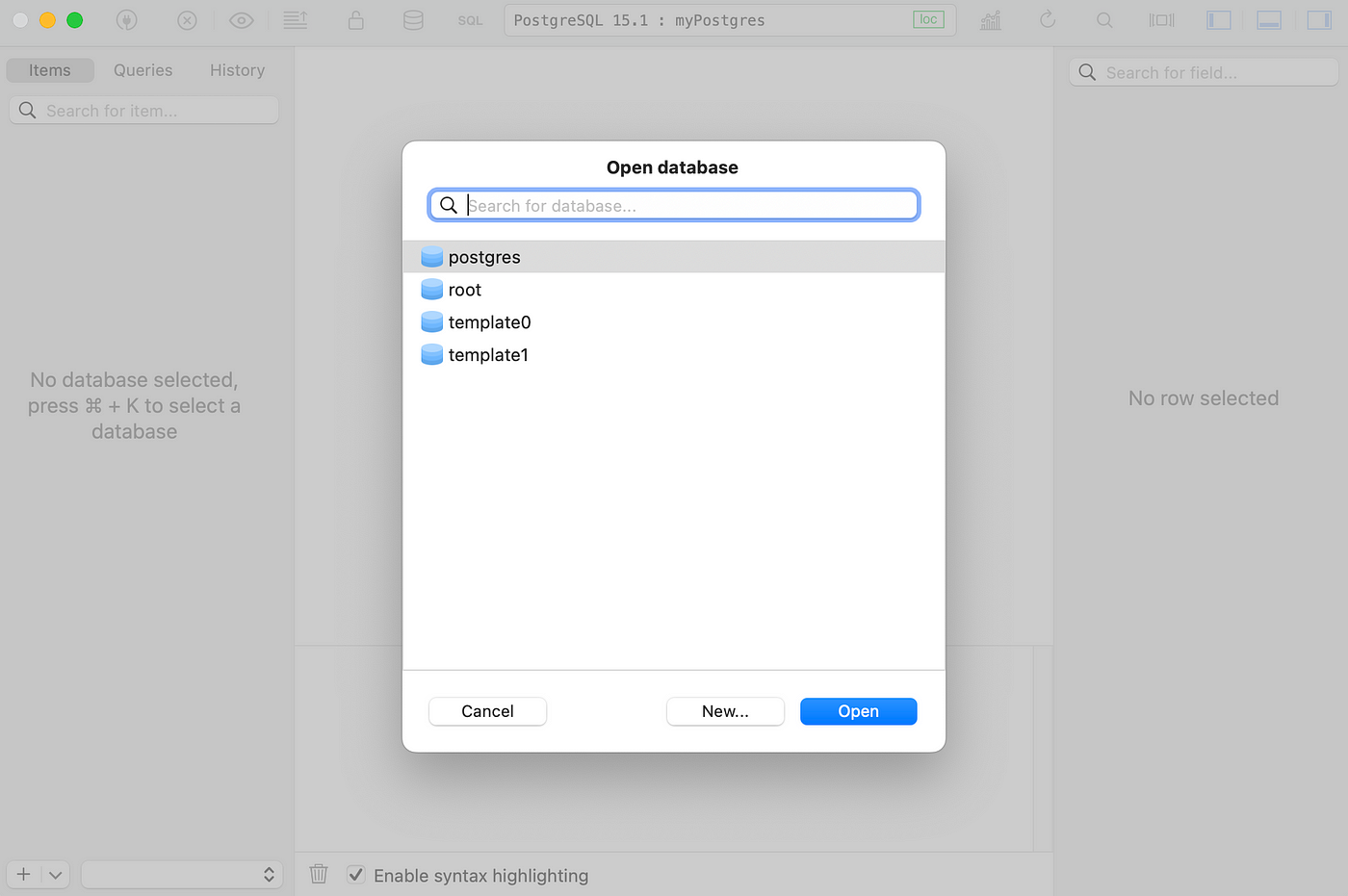 Now from outside the container, we chain the createdb command directly with the docker exec command: