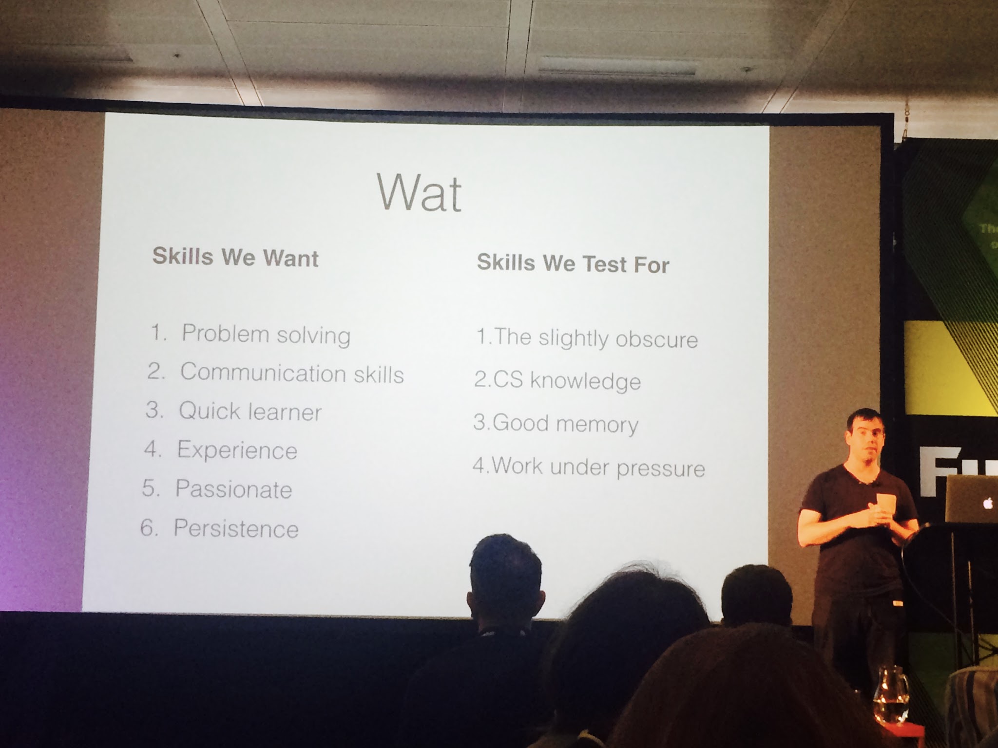 There was one more interesting lightening talk that I attended and I would like to specifically mention about it was "Dev interviews - You’re doing it wrong" by Guy Nesher. We here at TO THE NEW being part of technology vertical go through hiring process now and then. Its important for us to make a right decision while saying yes or even saying no to a candidate because either we can end up hiring a misfit or rejecting a great talent and we do not want to be ending up in either of the situations. Guy explained what is the apt way to judge the candidates,what skillset we should look for and some good advice.
