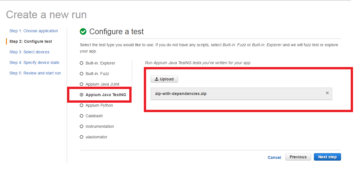 Then use this file to automate your test-cases on AWS Device Farm: on the Configure test page, choose Appium Java TestNG as test suite and Upload this file ‘zip-with-dependencies.zip’ and Enjoy your test-suite on multiple devices in parallel. 🙂