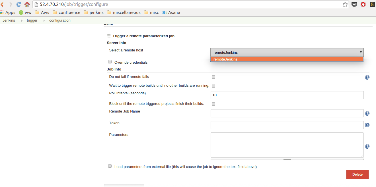 After doing that, we can choose our remote Jenkins server in “Select a remote host” field.