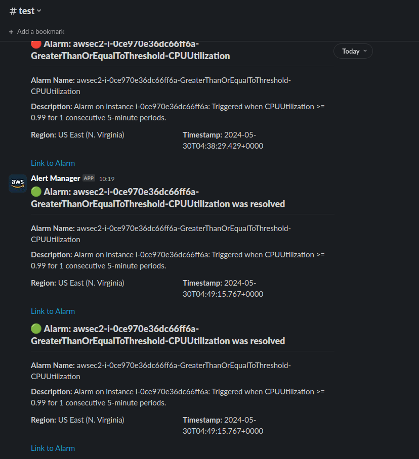 You have now successfully set up an AWS Lambda function to send CloudWatch alarms to a Slack channel. This integration allows you to stay informed about your AWS resources’ health and performance in real-time, directly over your team slack channel.