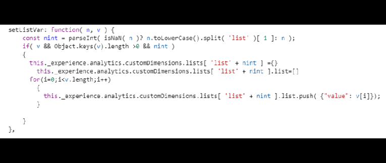 NOTE: Here “valueForList1/valueForList2/valueForList3” are data elements that fetch value from data layer and break each value based on delimiter and assign it into an array.